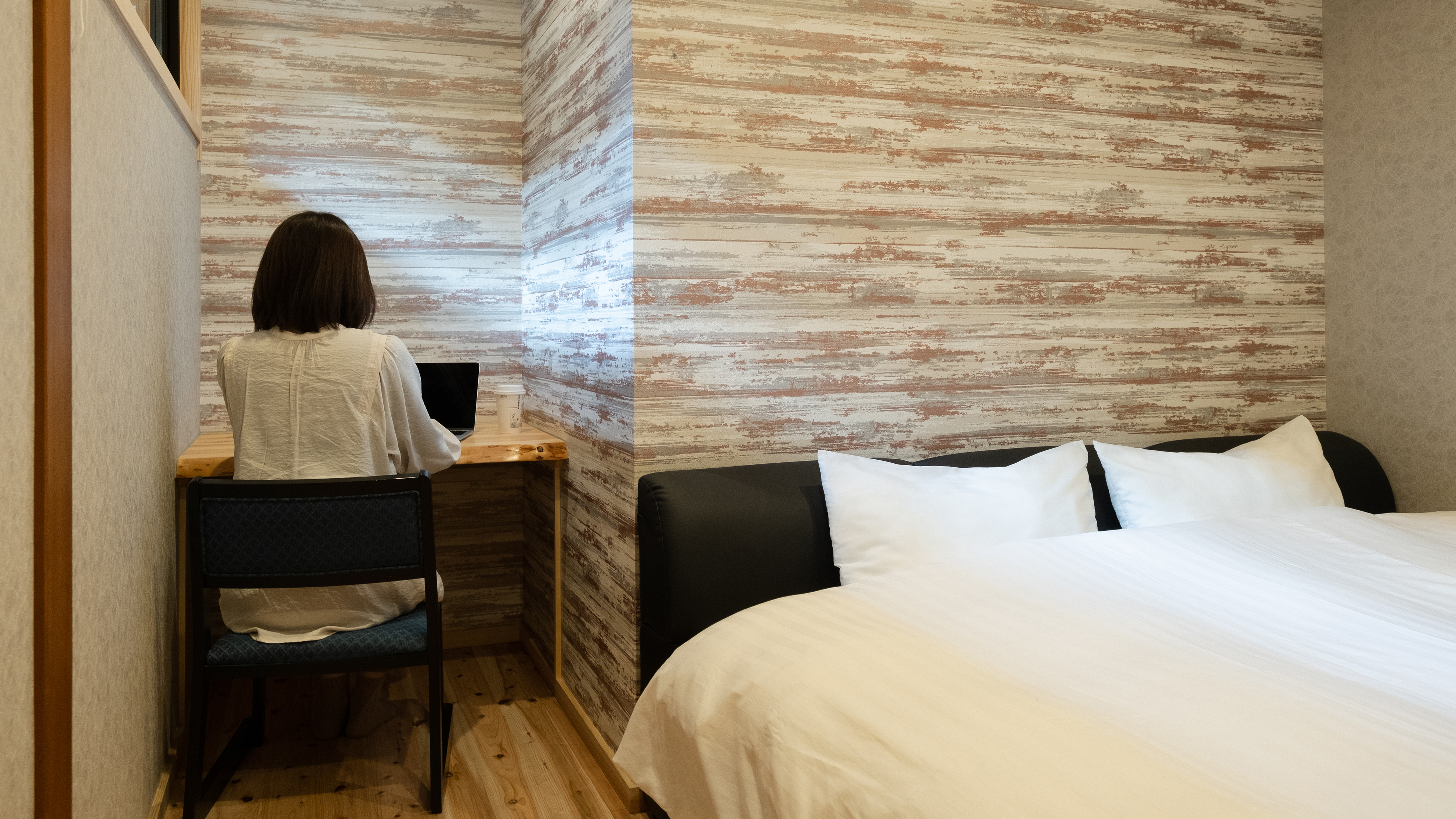 客室は、禅寺の宿坊をイメージしたお部屋で、中部屋、小部屋の全18部屋の中から自分に合った部屋が選べ、木の机や畳スペースがしつらえられたミニマムな空間で自分と向き合える時間に。