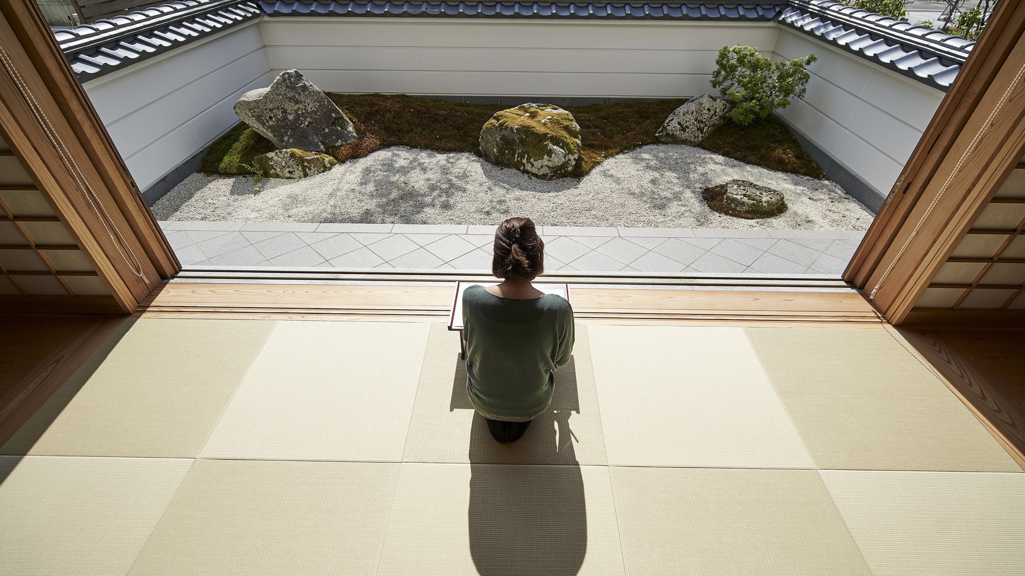 お部屋には襖絵や曼荼羅といった美術品が飾られ、緑豊かな美しい中庭を眺められる仕様になっており、厳かな空間でありながらも一人ゆったりと過ごせる環境に◎