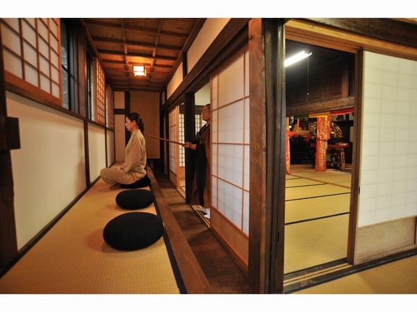 事前またはチェックイン時に坐禅・写経体験を申し込むことができ、坐禅は午前6時〜6時30分の間無料で、写経は午前8時30分〜10時 の間1,000円 (税込)で体験可能 (お茶・お菓子付き)。