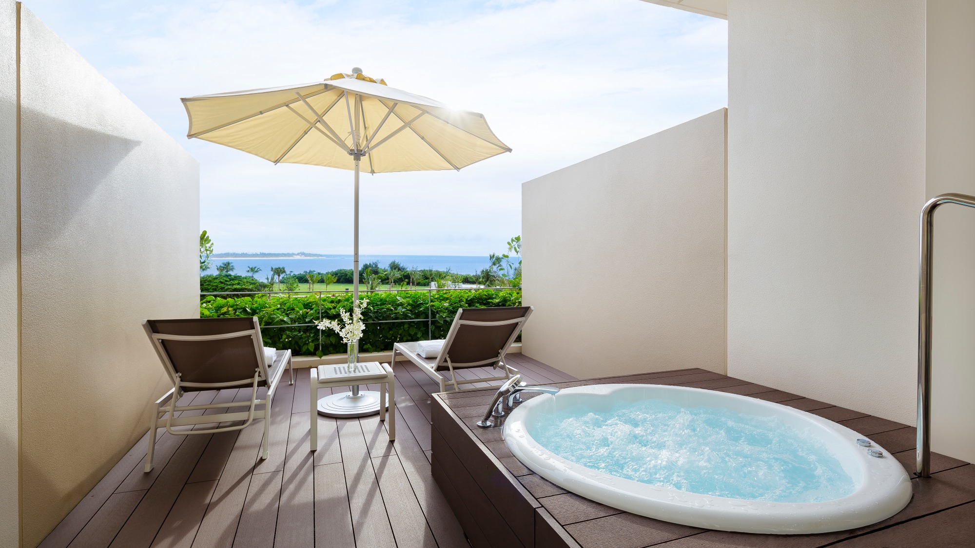 海を眺めながら屋外で入浴ができるオーシャンビューバススイートやテラスから庭先に出ることができるガーデンビューのお部屋など、リゾート感たっぷりなお部屋ばかり。