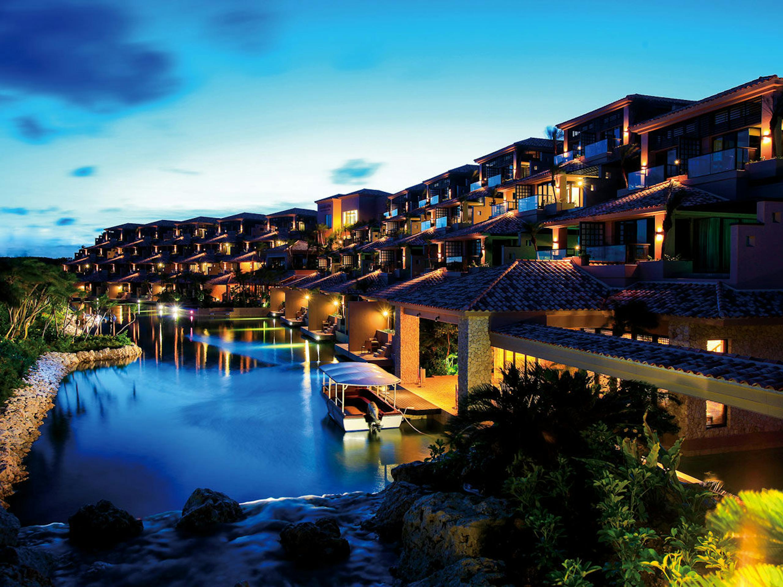 リゾート内には、沖縄伝統の赤瓦屋根のコテージや緑いっぱいの庭など自然をたっぷりと感じられるほか、プールやスパ、バーなど、大人のラグジュアリーな空間も広がっています。