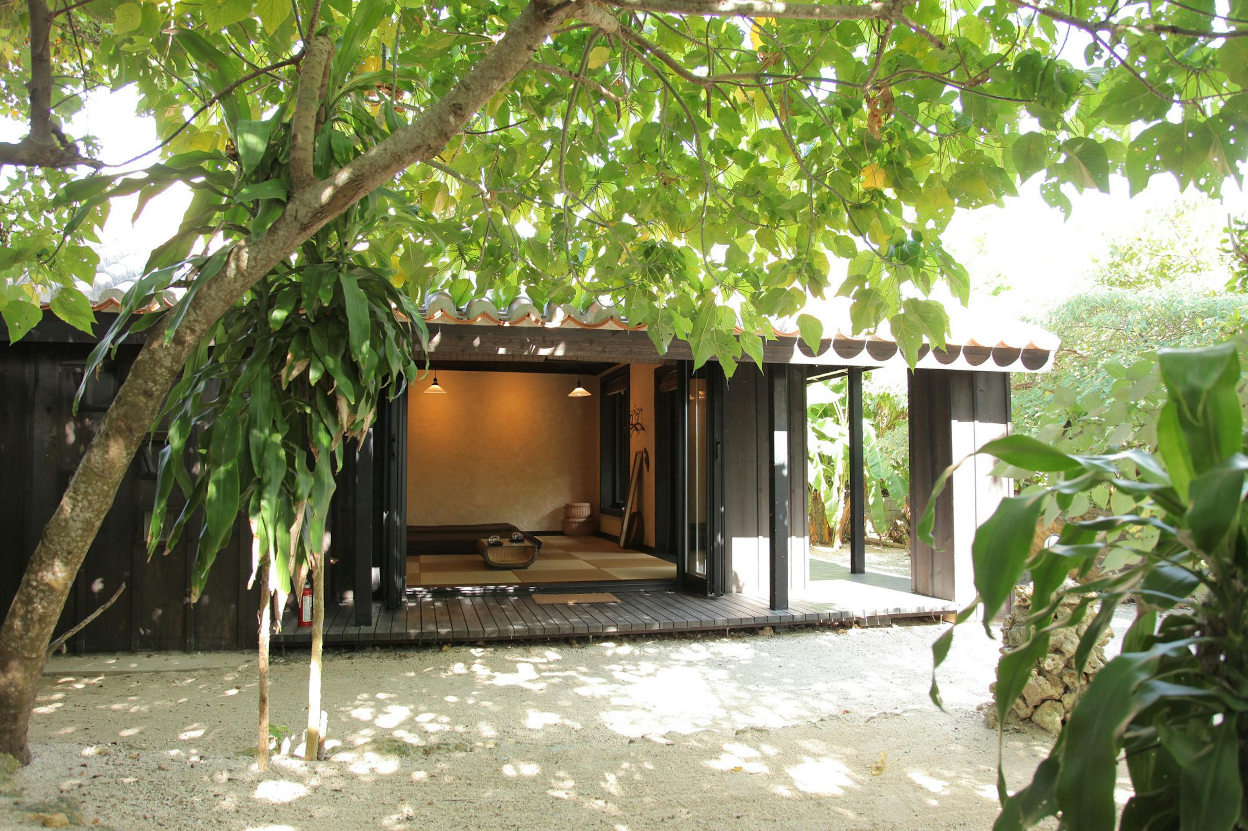 竹富島の町並み保存地区にある1日2組限定プライベート宿。各部屋庭付きでのんびり過ごせる。