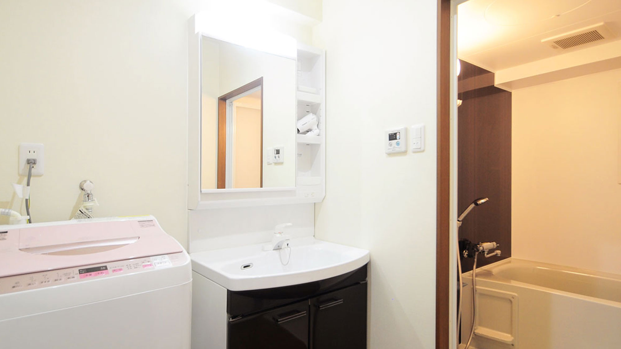 豊富なアメニティが用意されており、ヘアケア用品やコンタクトレンズ、LEDキャンドルやランタンなどの貸出サービス充実。洗面台脇の棚や洗濯ネットなど、細かいところまでこだわった設備が特徴で、長期滞在者にとって過ごしやすい環境が整っていますよ。