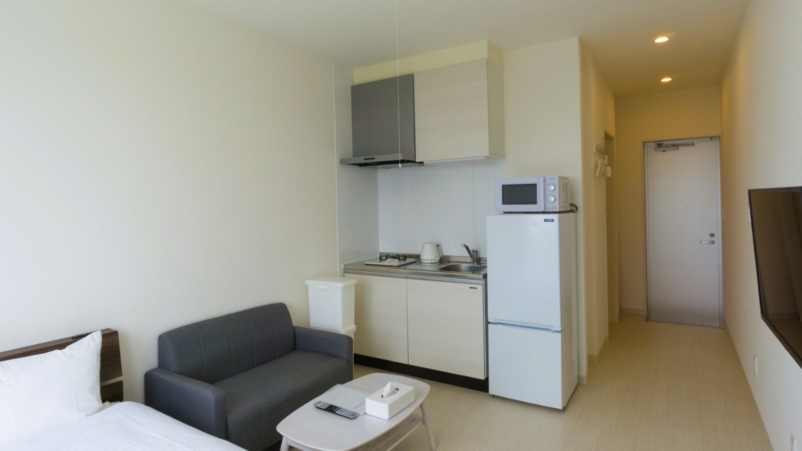 さらに全室ツインルームで、ソファーベッドも完備されているので一人の長期滞在でも快適に過ごすことができます。