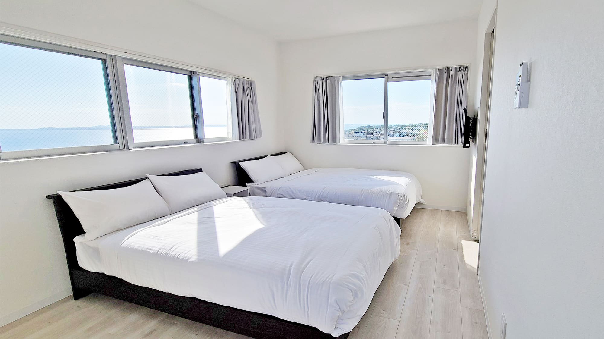 一人旅で利用する人も多く、一人利用にぴったりなツインルームのお部屋でもキッチンや洗濯機が備わっており、バスルームから海が眺められたり、リゾート気分に浸りながら、最高の長期滞在に。